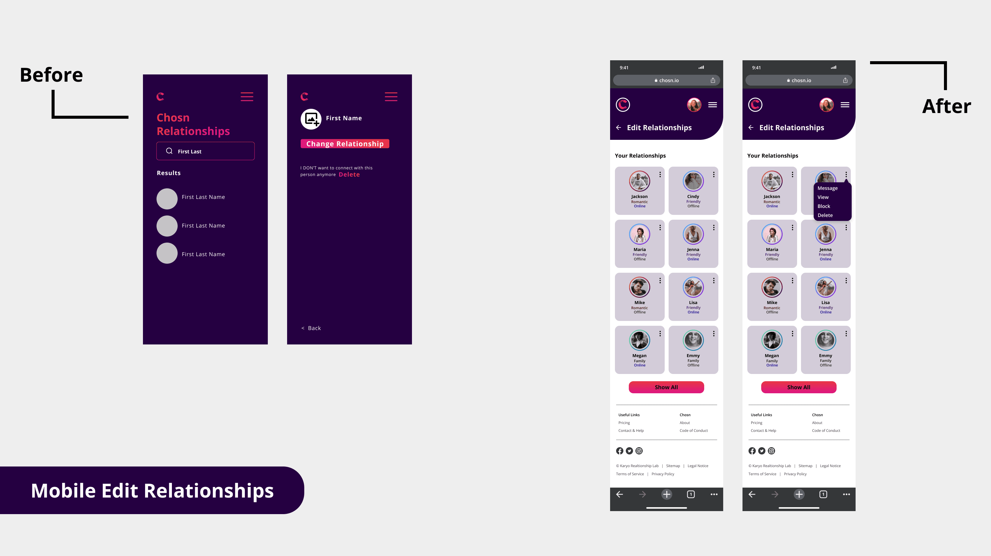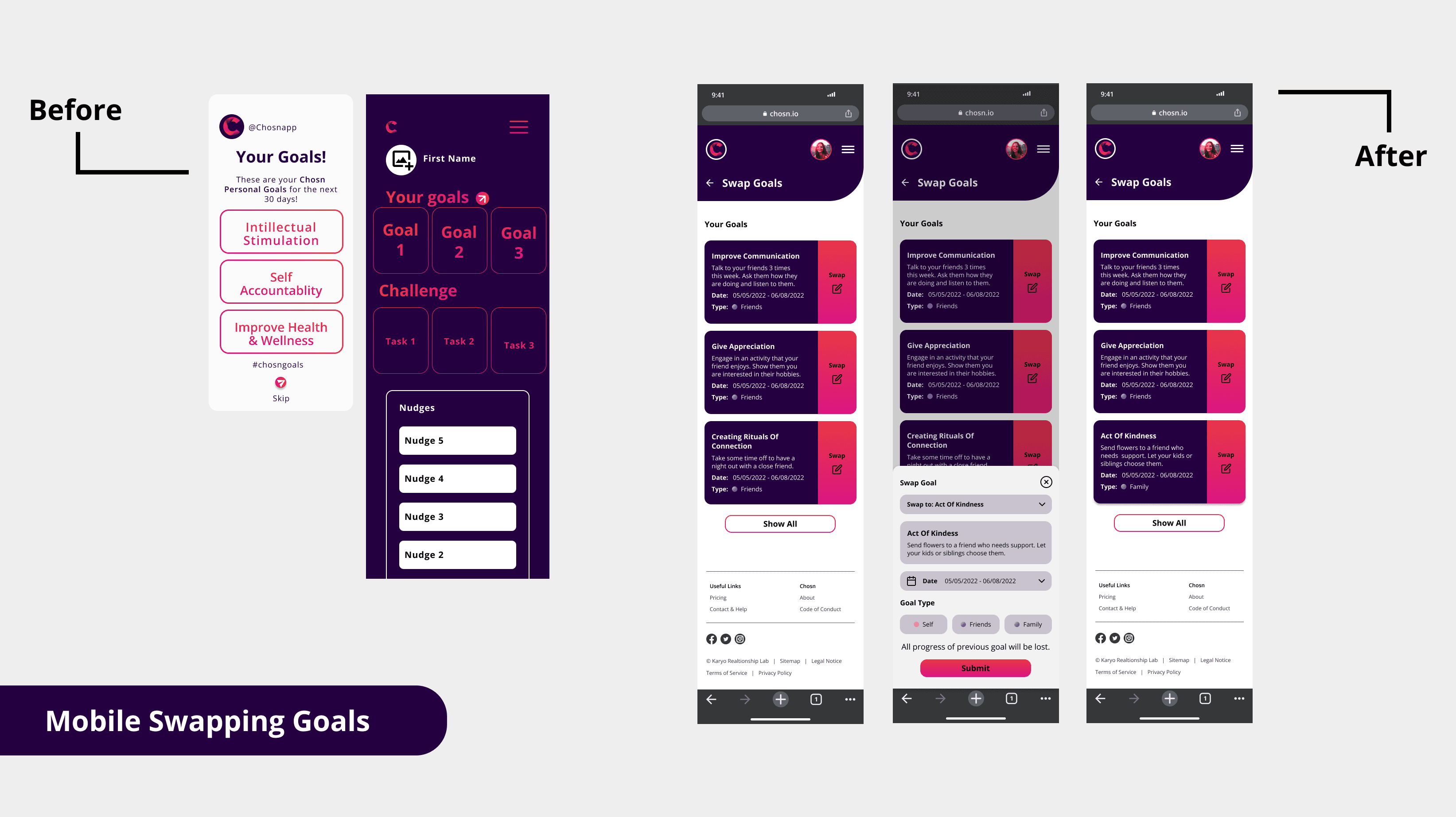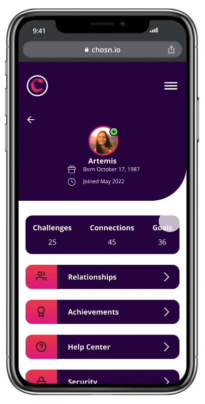 Background: Chosn is a relationship web app designed to enhance and transform personal connections through behavioral science. This case study highlights its core features, user experience, and its positive impact on helping individuals achieve their relationship goals.