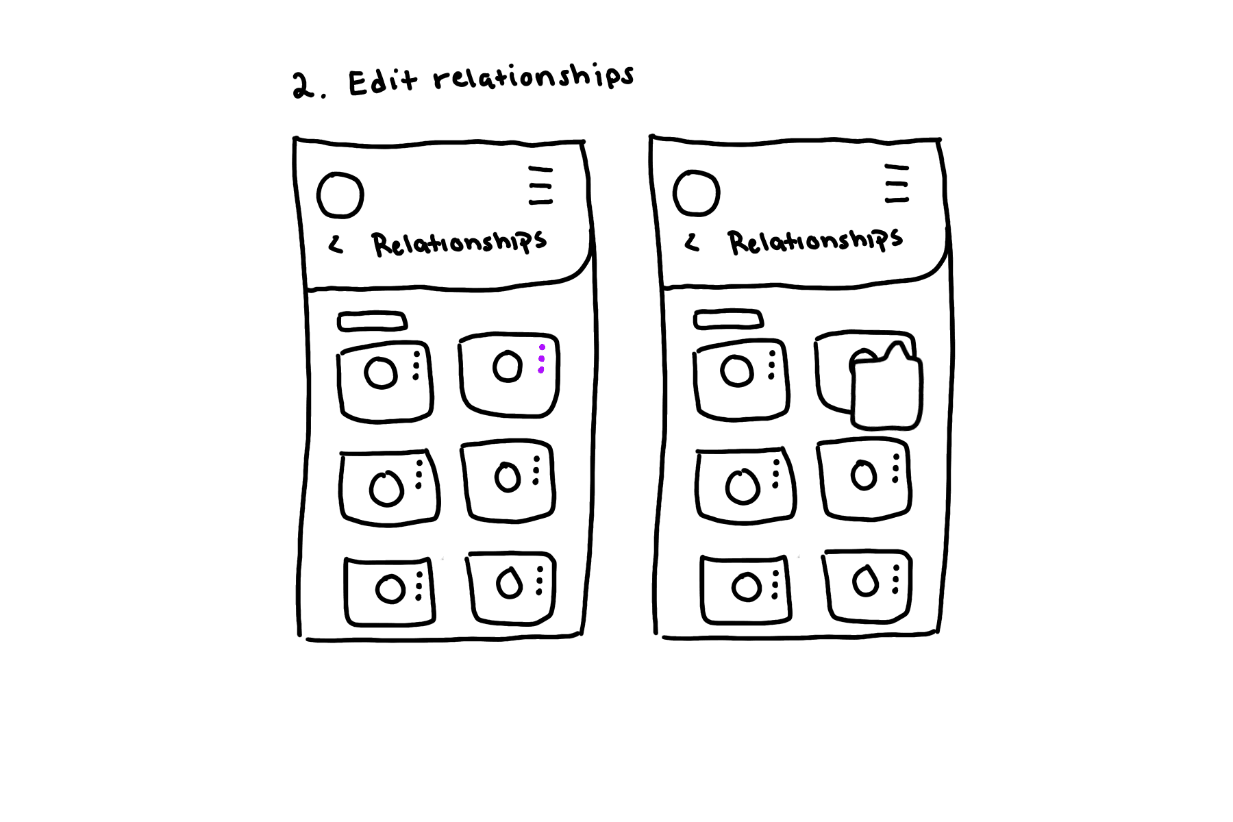 Users can view relationships they have added to their network here and tapping on the kebab menu will allow them to edit their connection.