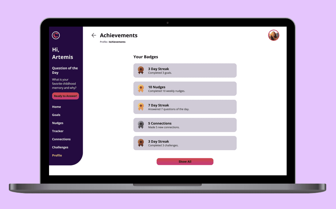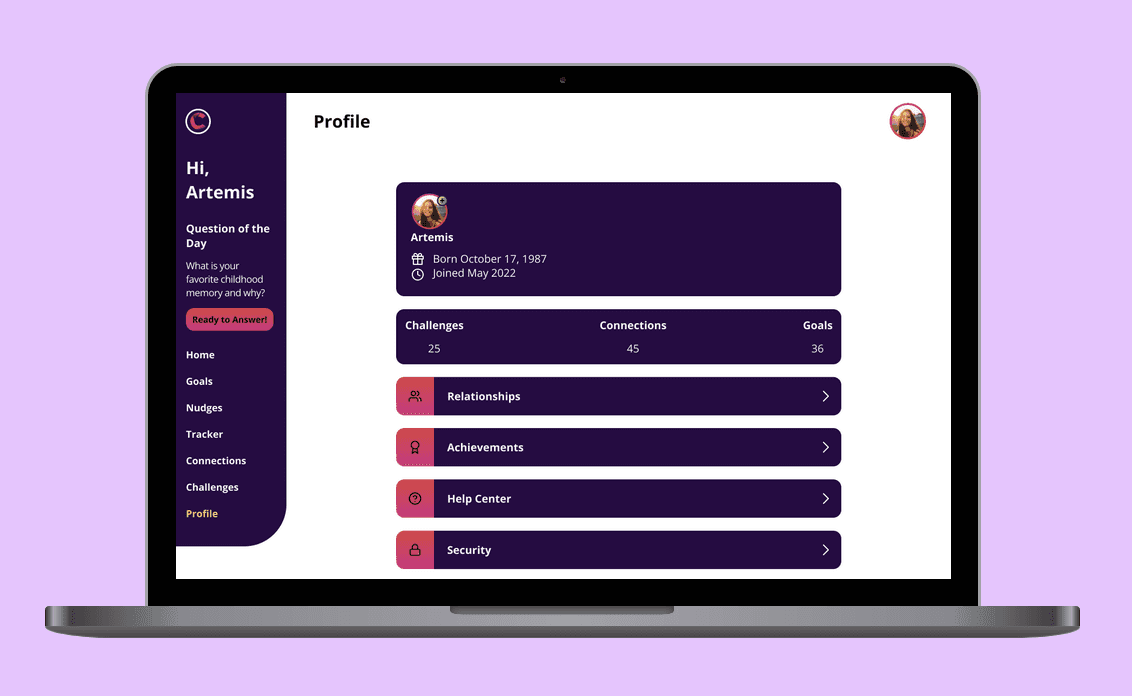 I led a team of 5 designers, overseeing project timelines and providing guidance and feedback. I contributed by redesigning multiple product screens, with a focus on enhancing the dashboard experience. My work included improving user profile settings, managing profile picture changes, editing relationships, swapping goals, viewing achievements, and refining the overall layout design.