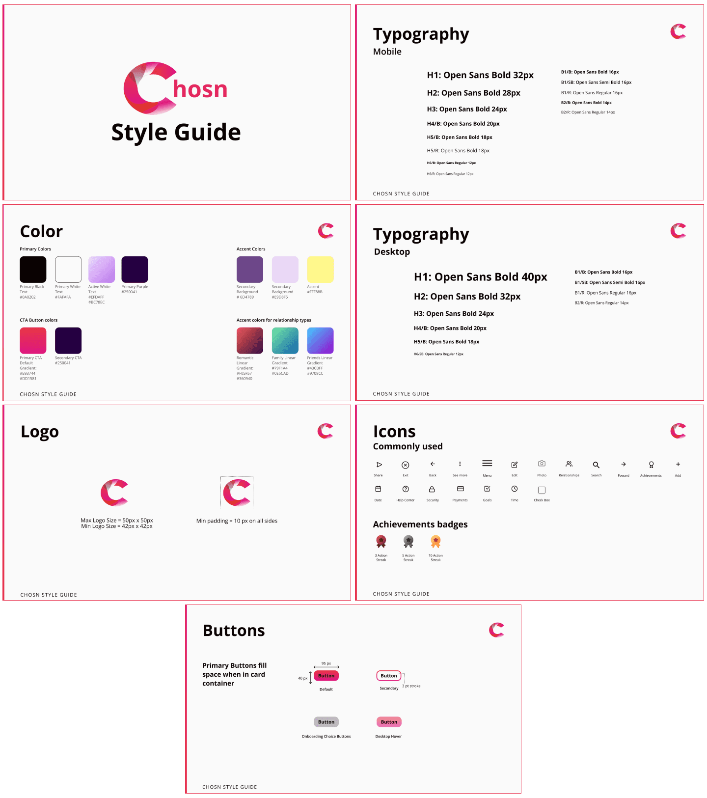 The client shared a lot of informative articles and a competitive roadmap of features they liked about specific apps that could possibly be implemented into the Chosn brand. I researched the differences between these apps to determine what design decisions we should focus on to create our designs for this project.