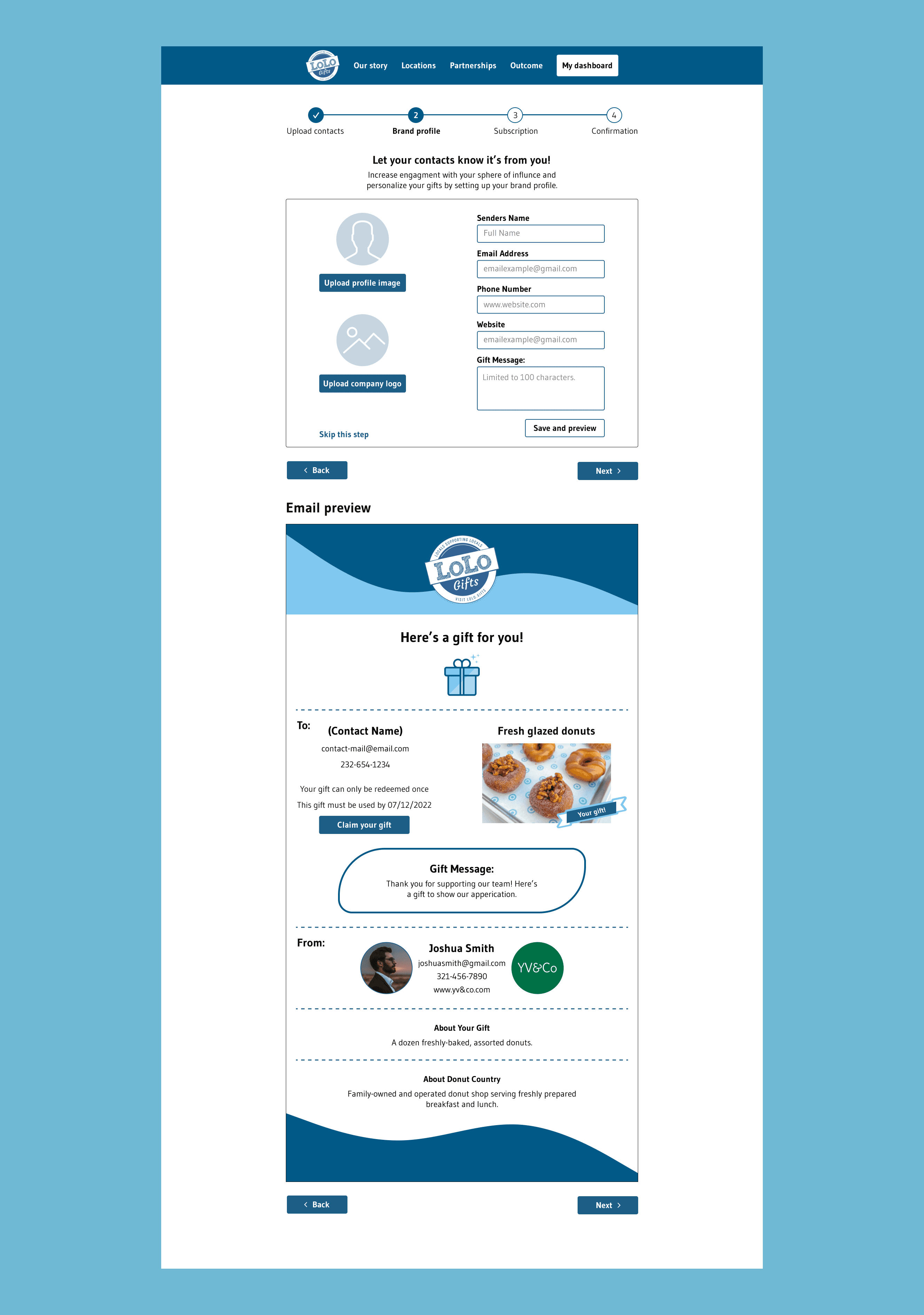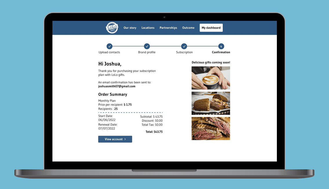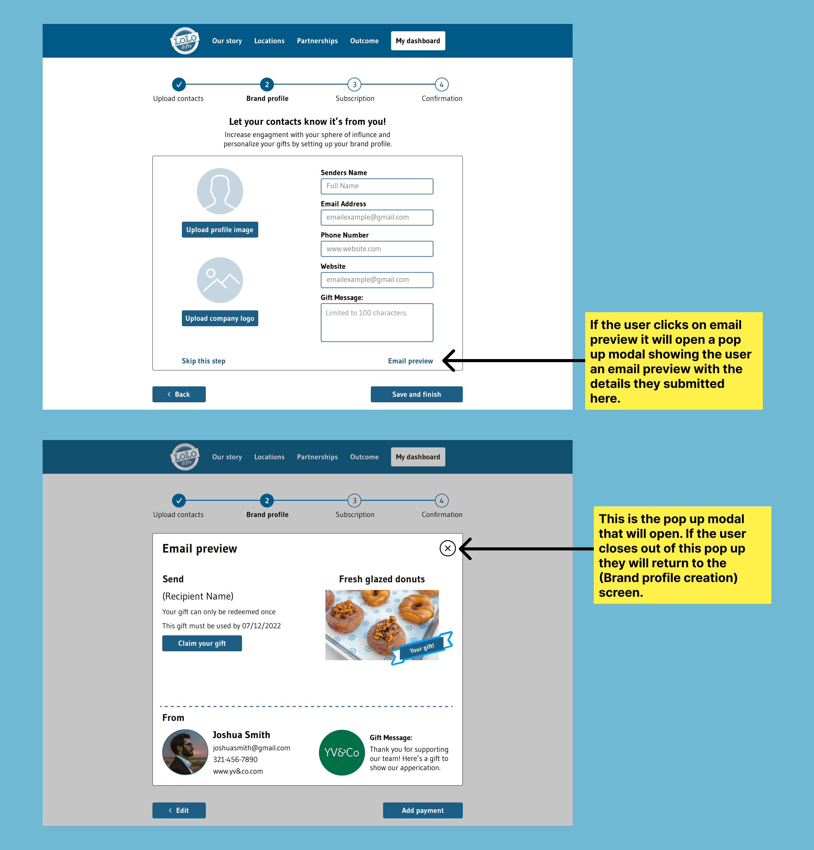 We aimed to enhance the email preview page, which is a crucial step for gift receivers. I took the initiative to develop the second part of the email preview and included annotations to clarify the flow for the client.