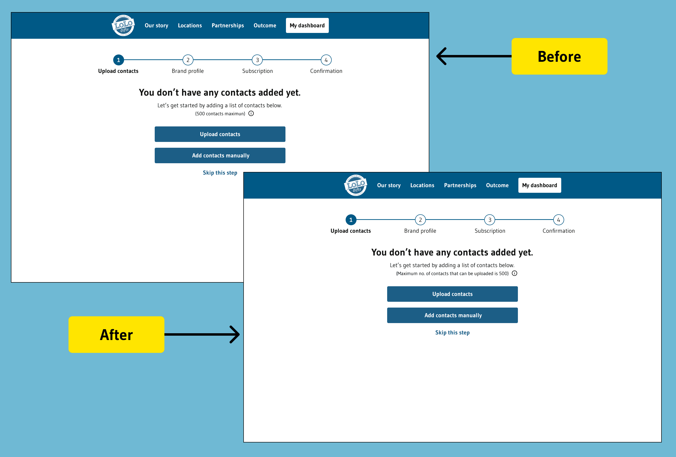 Testing Insights: Overall, the feedback was positive, with only a few users expressing confusion about the wording on the 'Upload Contacts' page, specifically the phrase '500 is the maximum. Some users mistakenly interpreted this as the minimum number of contacts required. Based on their suggestion, we revised the text to 'Maximum number of contacts that can be uploaded is 500' to eliminate any potential confusion moving forward.