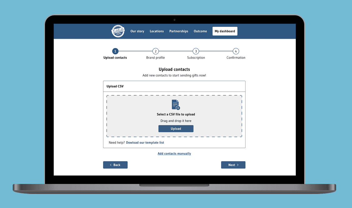 The primary objective was to enhance the Lolo Engagement sign-up experience, ensuring users can easily navigate and fully appreciate the services offered. I focused on refining the on-boarding flow, including the sign-up process, contact uploads, email preview, subscription plans, and confirmation page. Additionally, I aimed to improve spacing, alignment, and overall styling for each of these components.