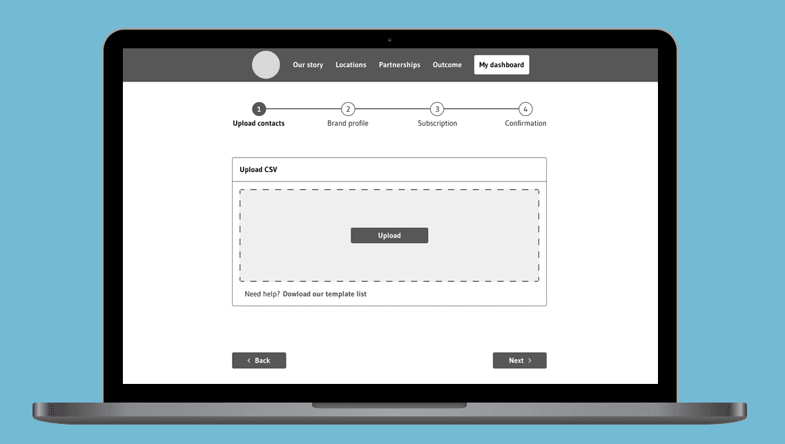 Given our tight schedule, I went ahead and created some rapid wireframes to help our team decide which ideas to pursue. I got inspiration from Client Giant and other subscription websites to develop these initial concepts. Here are some wireframe examples I created.