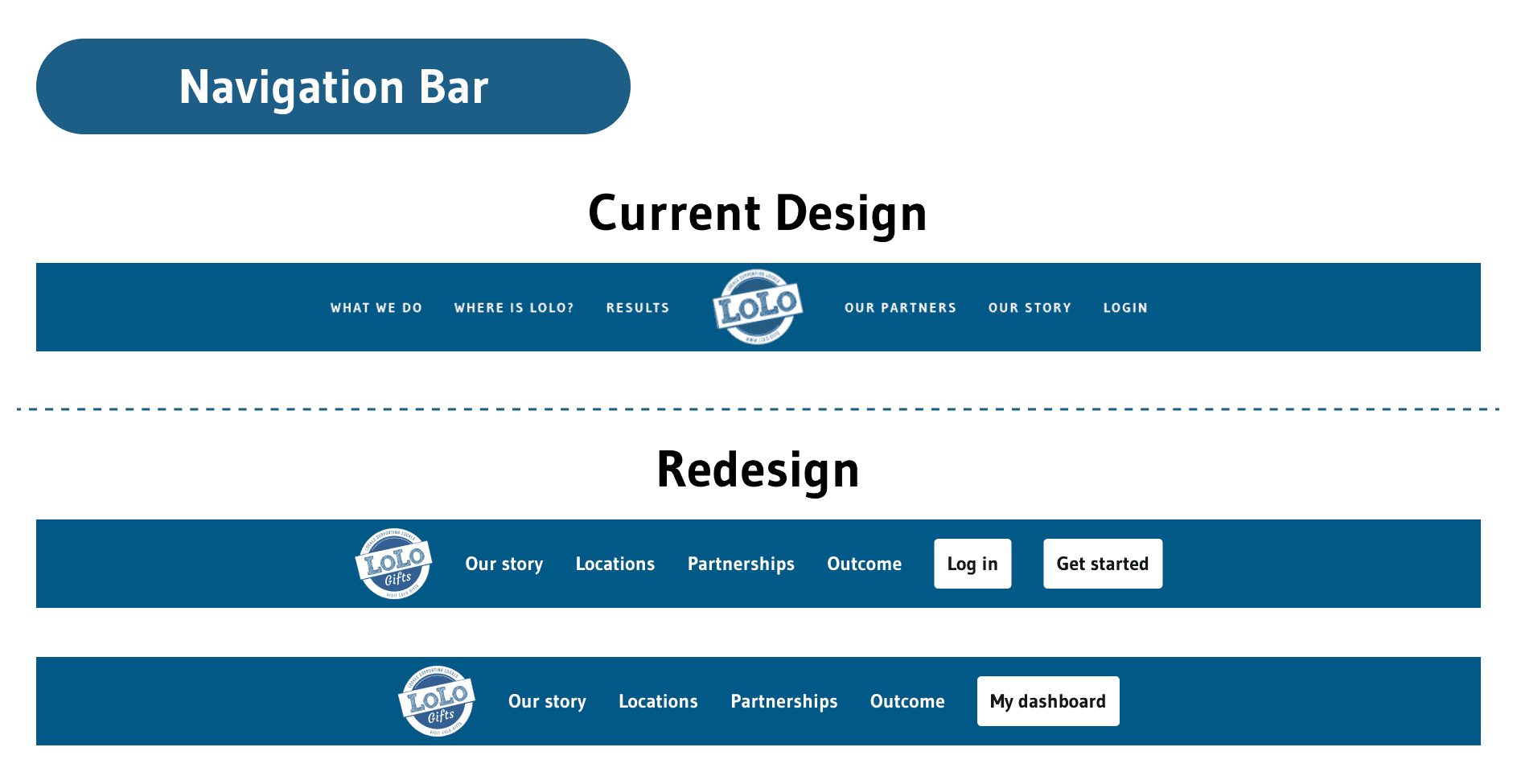 The team and I discussed several issues with the current navbar: it lacks context, uses confusing terminology, and doesn’t include a sign-up link, which could be puzzling for new users. Additionally, the logo and links are misaligned, and the "What We Do" link doesn’t accurately reflect its destination.